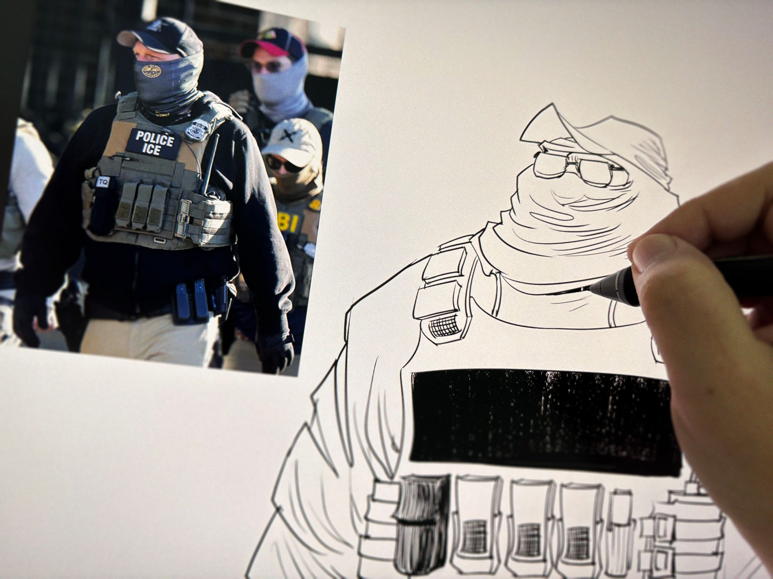 Once the final idea is chosen, I look for reference images and start drawing the final version. A note about references: although I can draw a lot from memory, it is a good habit and even a sign of professional humility to document yourself visually whenever possible because often you end up picking up details in your reference that can enrich your drawing. Of course, it is the artist in the end who decides what he ends up drawing and how he draws it.